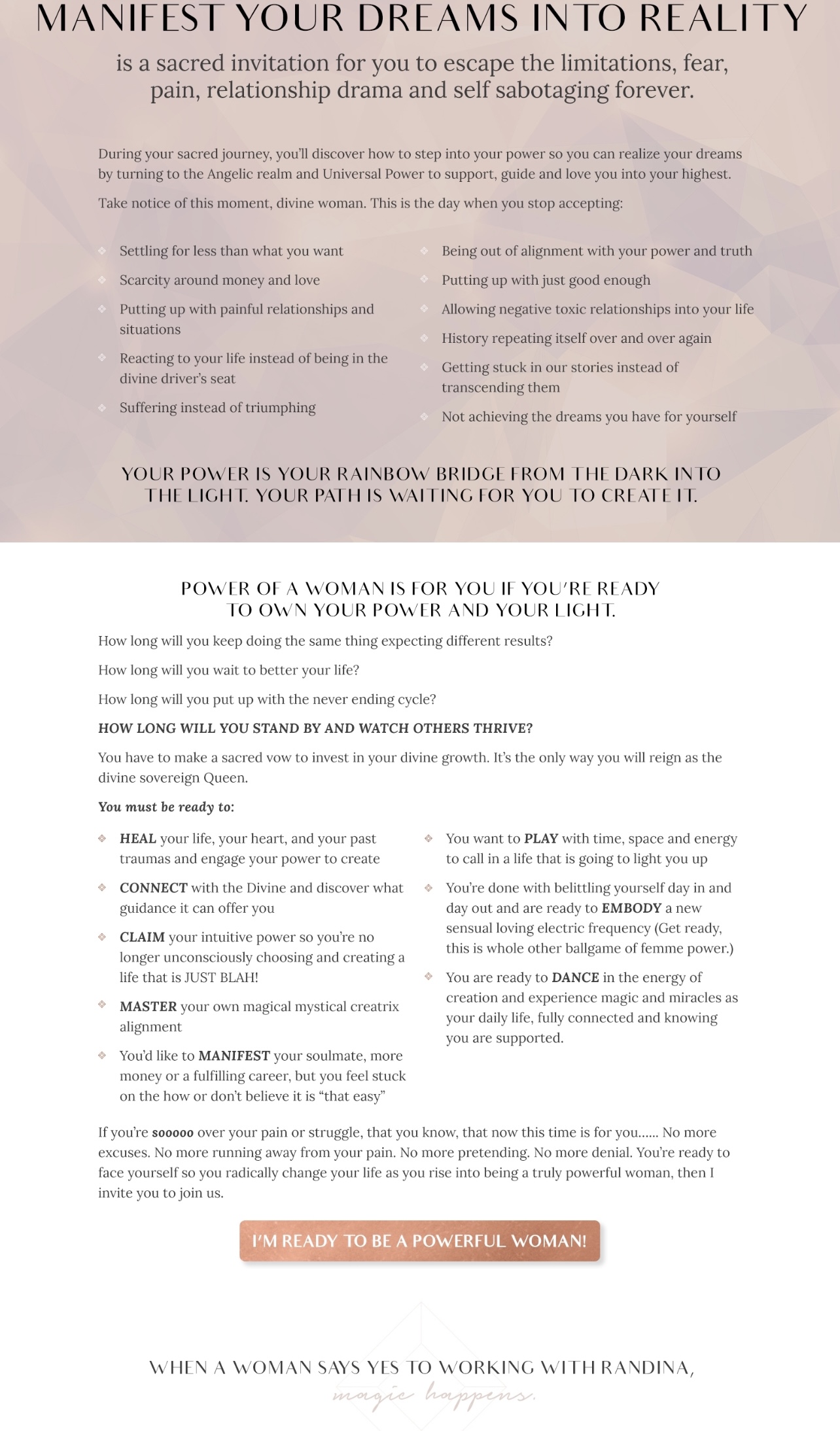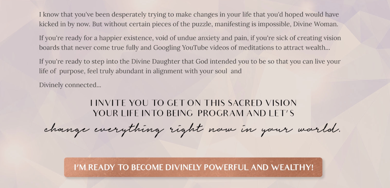 Sign up for instant access to this FREE 6 Day Sacred initiation and activate your Divine Feminine flow. Release blocks to receiving, and magnetize abundance through Divine Feminine Embodiment practices. Reclaim the power of your Divine Feminine and rise into sacred flow today.